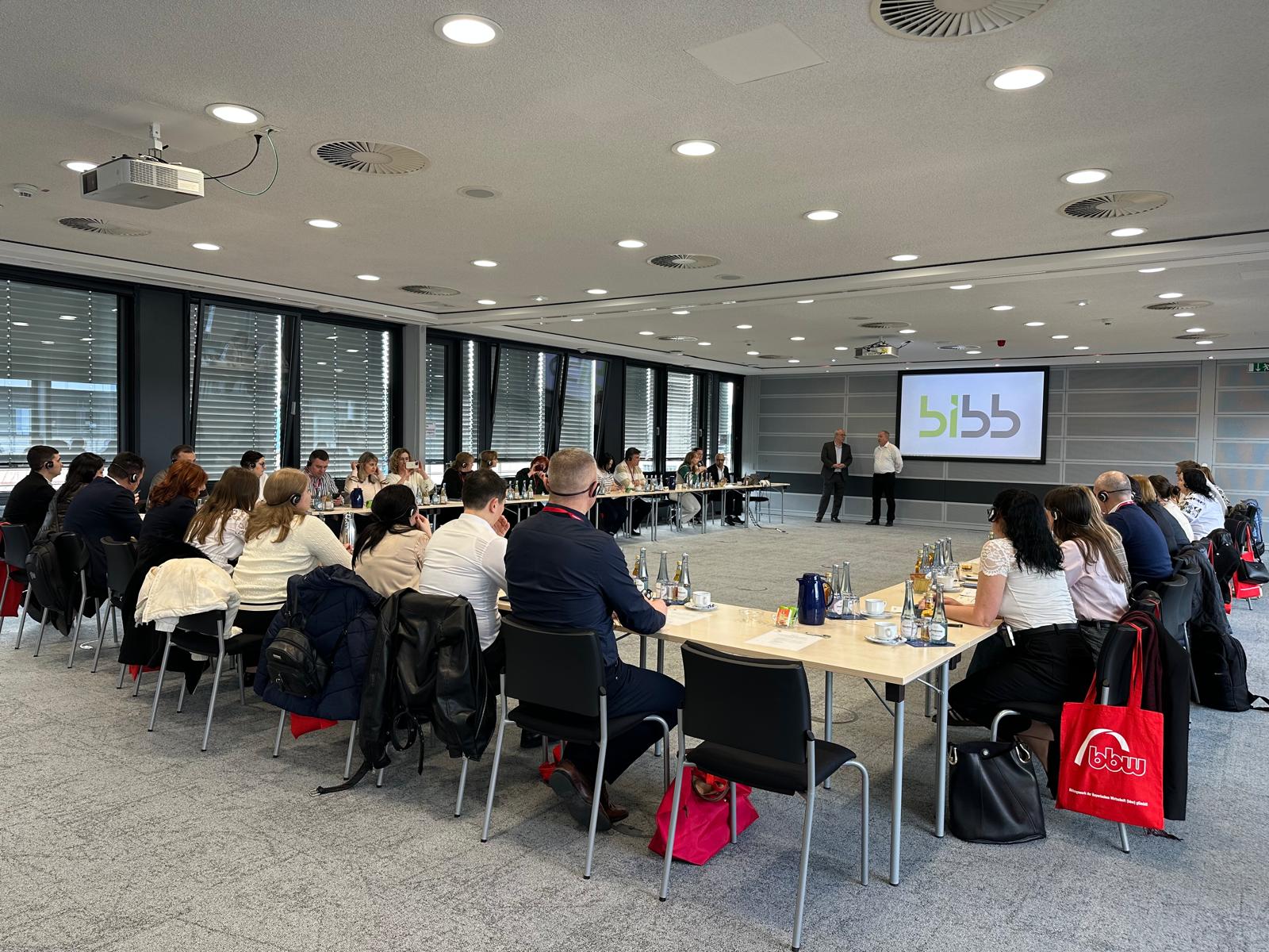 Серед центральних подій в рамках поїздки став візит до Федерального інституту професійної освіти (Bundesinstitut für Berufsbildung – BIBB) у Бонні, де делегація змогла познайомитись з цілісною архітектурою німецької системи професійної освіти – однієї з найуспішніших у світовій практиці. Основним доповідачем з німецької сторони під час відвідин BIBB – інституції, яка фактично задає правила гри для всієї системи підготовки кадрів у країні, – виступив Петер Рехманн, заступник керівника GOVET, що є спеціалізованим підрозділом BIBB, відповідальним за міжнародну співпрацю. Саме ця структура виступає «вікном у німецьку систему» для інших країн, пояснюючи, адаптуючи та підтримуючи впровадження елементів дуальної освіти за кордоном. Таким чином, GOVET поєднує експертний потенціал BIBB із міжнародними партнерствами, зокрема і з Україною та Молдовою.