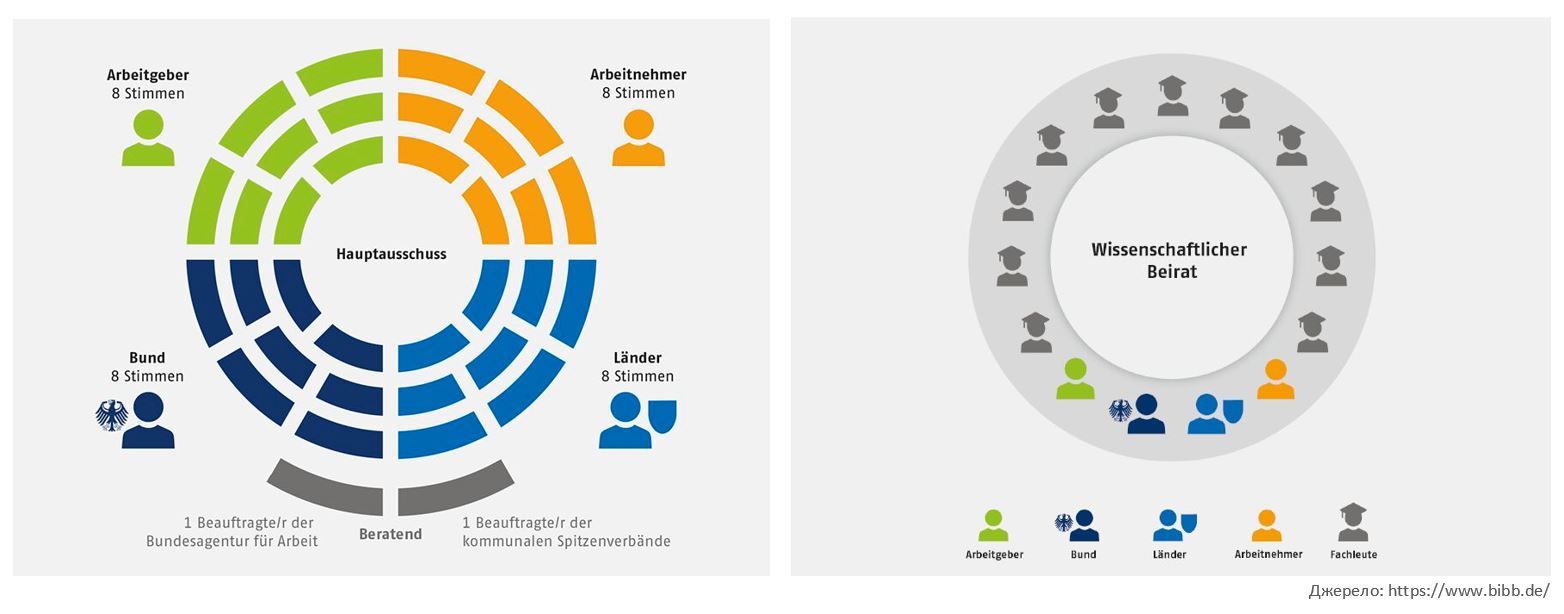 Водночас важливу роль у забезпеченні наукової якості та стратегічного розвитку відіграє ще один орган – Дорадча наукова рада (Wissenschaftlicher Beirat), яка складається з 11 визнаних зовнішніх науковців зі сфери досліджень професійної освіти (як з Німеччини, так і з-за кордону). Ця рада здійснює консультування Головного комітету та президента BIBB, готуючи висновки та рекомендації щодо дослідницької діяльності інституту. Йдеться, зокрема, про формування наукових програм, співпрацю з університетами та іншими дослідницькими установами, а також оцінку щорічних звітів про результати наукової роботи інституту. Такий підхід дозволяє поєднати політичні рішення з науковою експертизою, забезпечуючи системний і водночас доказовий розвиток професійної освіти.